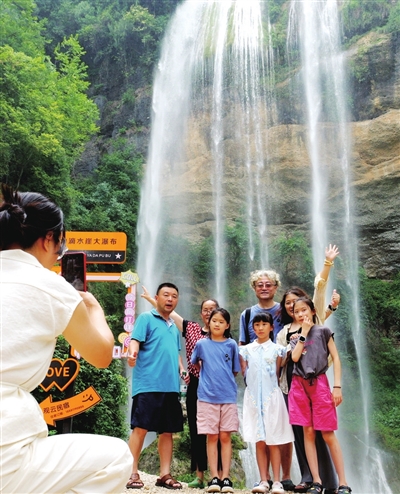 依托涼爽氣候,雙紫村特色民宿也迎來避暑高峰。游客漫步山間呼吸清新空氣,品嘗農(nóng)家菜,或沿新建步道直達(dá)瀑布打卡,體驗(yàn)“住于景中、游在咫尺”的便利。