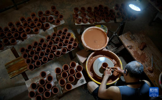 8月11日,在四川省彭州市桂花鎮(zhèn)桂花龍窯,陶藝制作人員在趕制陶器。