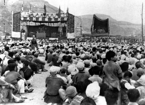 延安軍民集會(huì)慶祝抗戰(zhàn)勝利(資料照片)。新華社發(fā)