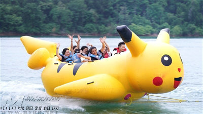 當(dāng)晨曦輕柔地灑滿湖面,好運碼頭已是一片歡騰景象。摩托艇引擎轟鳴,如離弦之箭劈波斬浪,激起雪白的浪花;尾波沖浪者身姿矯健,于浪尖上肆意飛馳,在碧波上劃出一道道瀟灑的弧線;不少游客專程前來體驗尾波沖浪、皮劃艇等水上運動,裝備租賃、教練服務(wù)等消費量增勢明顯。