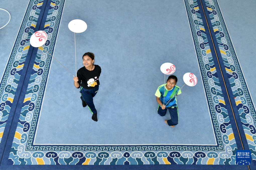 8月20日,來自孟加拉國的學(xué)員在河北吳橋雜技藝術(shù)學(xué)校排練廳內(nèi)練習(xí)雜技。