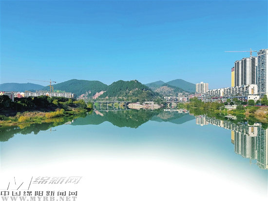 水清岸綠的鹽亭縣城一角