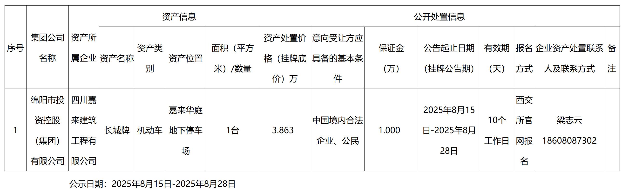 四川嘉來建筑工程有限公司企業(yè)資產(chǎn)處置公告