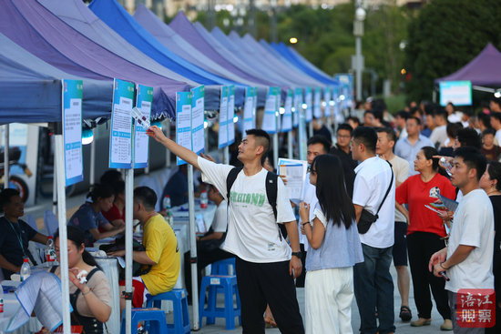 應(yīng)屆高校畢業(yè)生白冠平在傍晚時(shí)分來到招聘會(huì)現(xiàn)場(chǎng),向有意向的企業(yè)投遞自己的簡(jiǎn)歷。“我通過網(wǎng)絡(luò)了解到這次招聘會(huì),大學(xué)專業(yè)學(xué)的是網(wǎng)絡(luò)營(yíng)銷類,今天在現(xiàn)場(chǎng)也想找到類似崗位的工作。”白冠平表示,希望能有一個(gè)比較好的求職結(jié)果,能夠在綿陽(yáng)這座城市深耕發(fā)展。