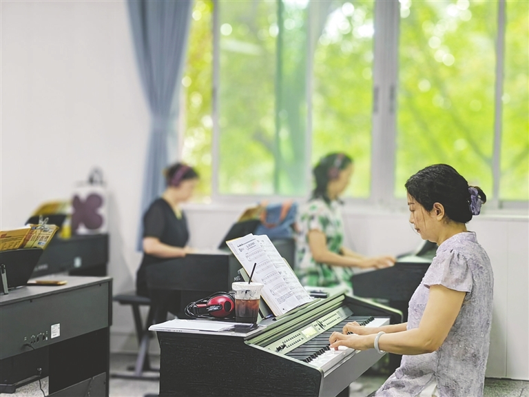 市民在綿陽(yáng)市文化館學(xué)習(xí)樂(lè)器演奏