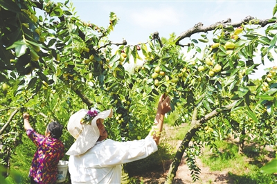 大力發(fā)展甜棗種植,不僅鼓起了棗農(nóng)的“錢袋子”,還讓周邊的村民在農(nóng)閑時節(jié)有了就業(yè)增收的好去處。“這段時間我們都在棗園收棗子,按小時計費(fèi),農(nóng)閑時候離家近還能有收入,很不錯。”七里村的村民蒲金華說。