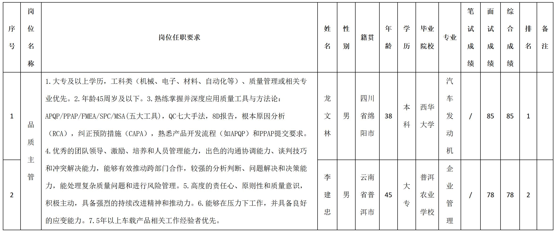根據(jù)四川安和精密電子電器股份有限公司發(fā)布的招聘公告及招聘相關(guān)規(guī)定,經(jīng)筆試、面試等程序,現(xiàn)將筆試(面試)成績予以公示。