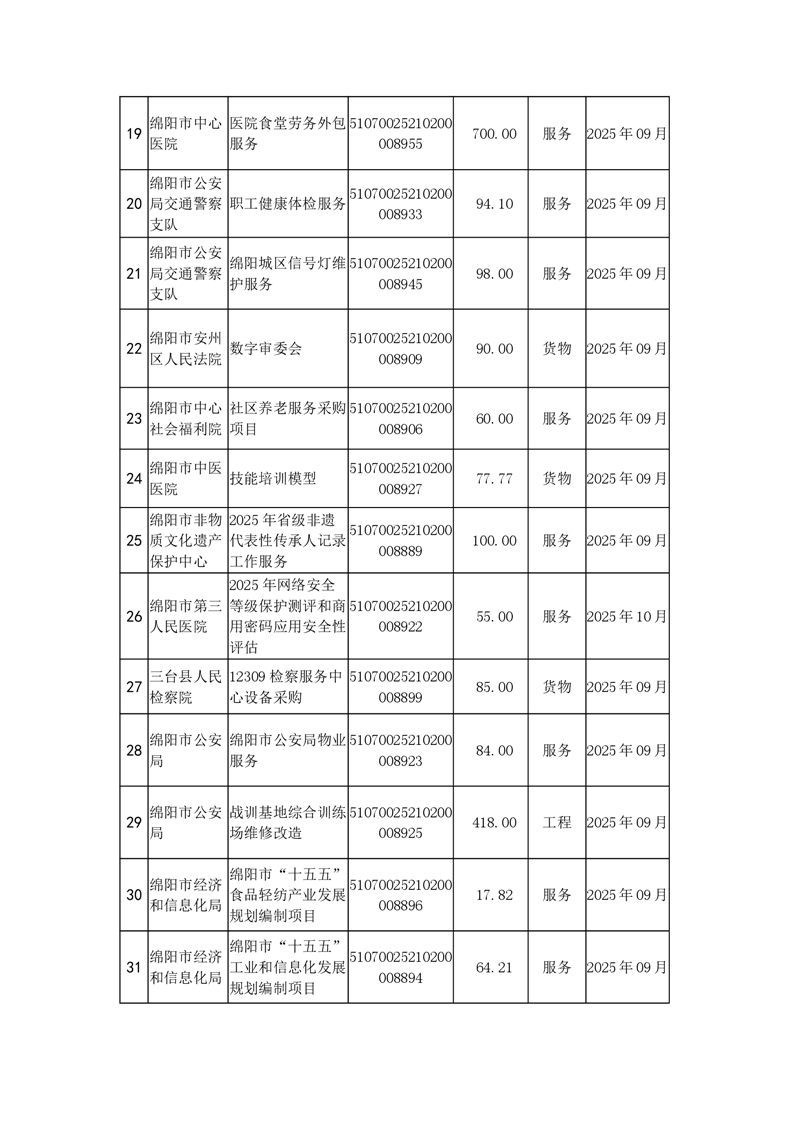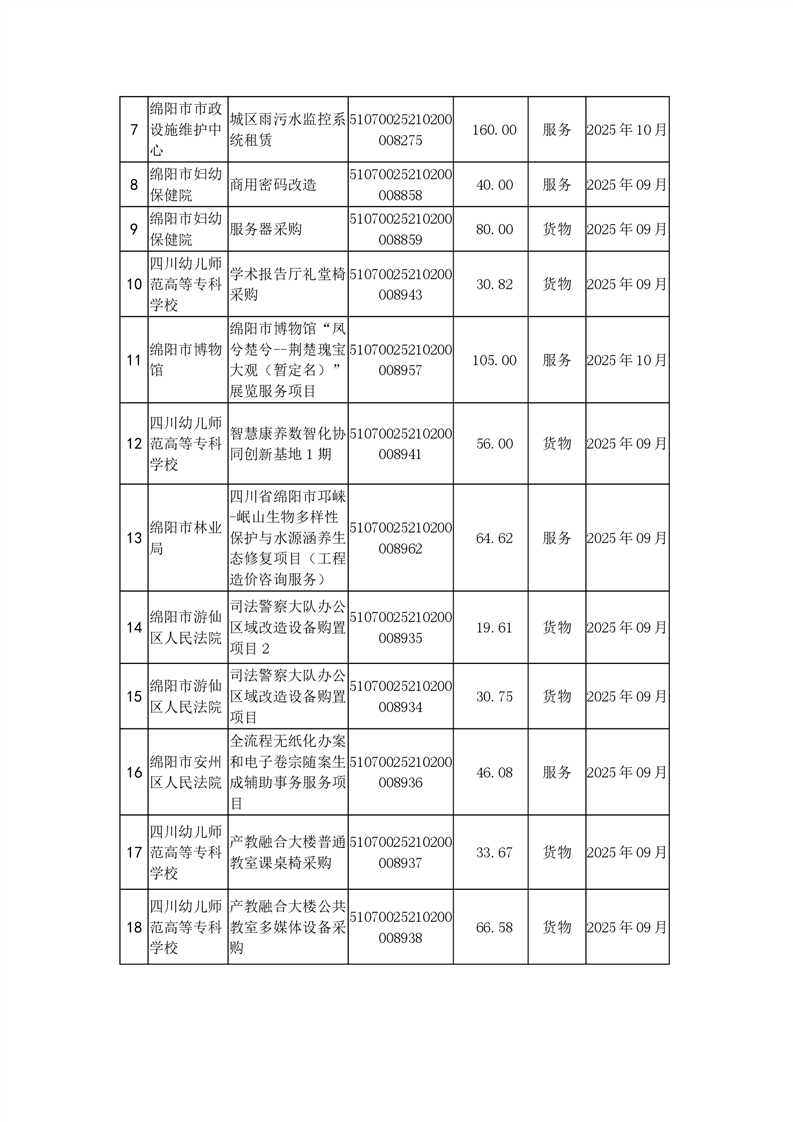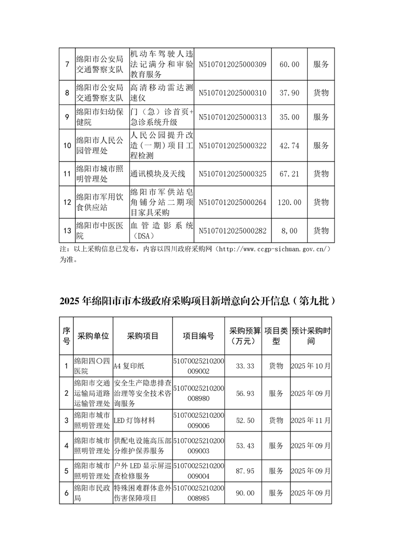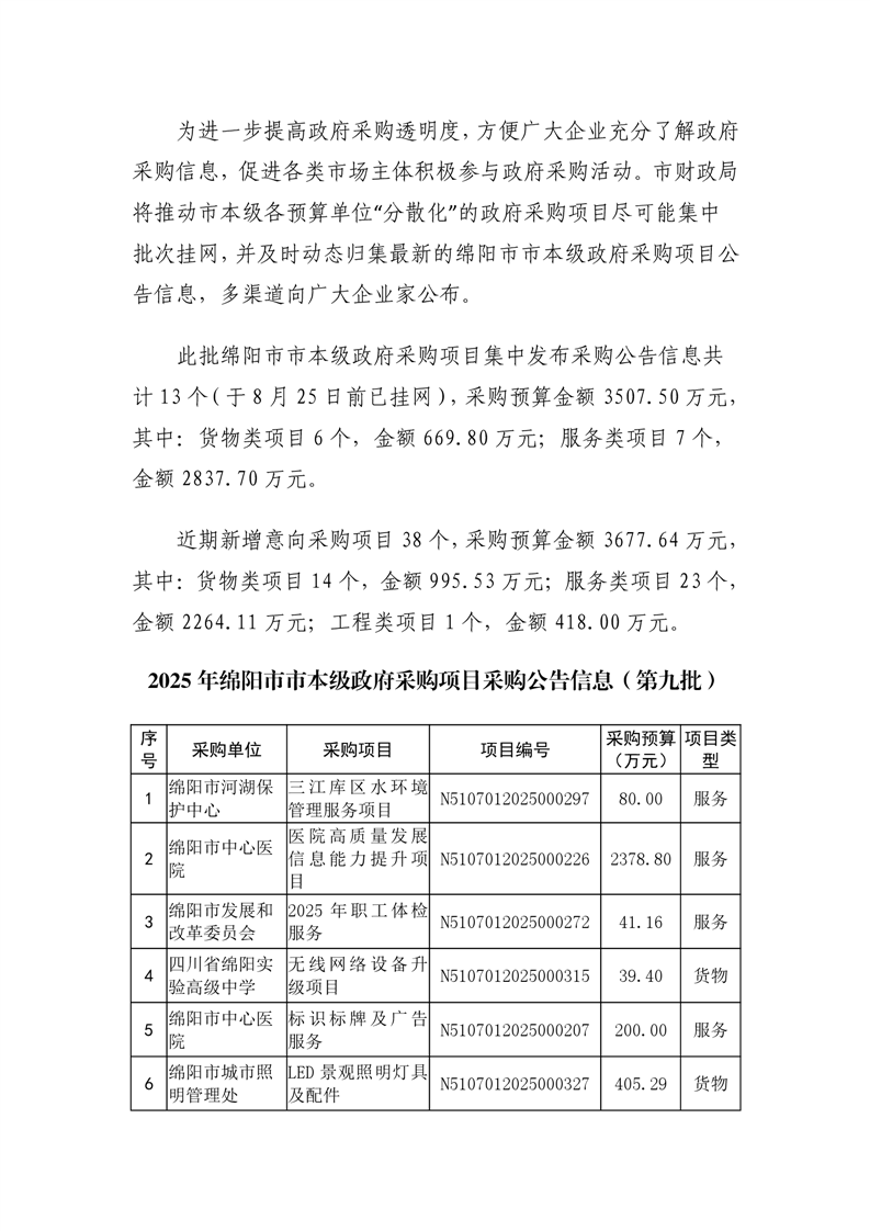 51個(gè)政府采購(gòu)項(xiàng)目的“機(jī)會(huì)清單”出爐!(2025年第九批)綿陽(yáng)市市本級(jí)政府采購(gòu)項(xiàng)目信息動(dòng)態(tài)(2025年第九波)