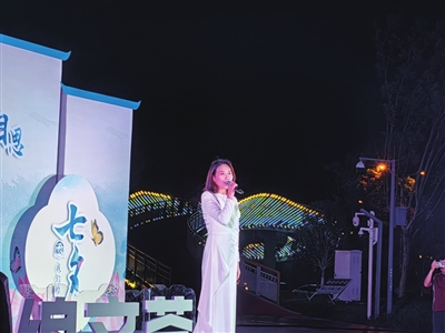 隨后,綿陽市文化館組織的鄉(xiāng)村文藝人才、首屆“綿樂薈”達(dá)人秀獲獎(jiǎng)選手,與綿陽市藝術(shù)劇院的專業(yè)演員輪番登場(chǎng)。即便天空飄起小雨,演員們?nèi)砸砸皇资讋?dòng)聽歌曲、一幕幕翩躚舞姿,將七夕的浪漫悄然傳遞給每一位市民。最終,民樂合奏《又見炊煙》《使者》為演出圓滿收尾。