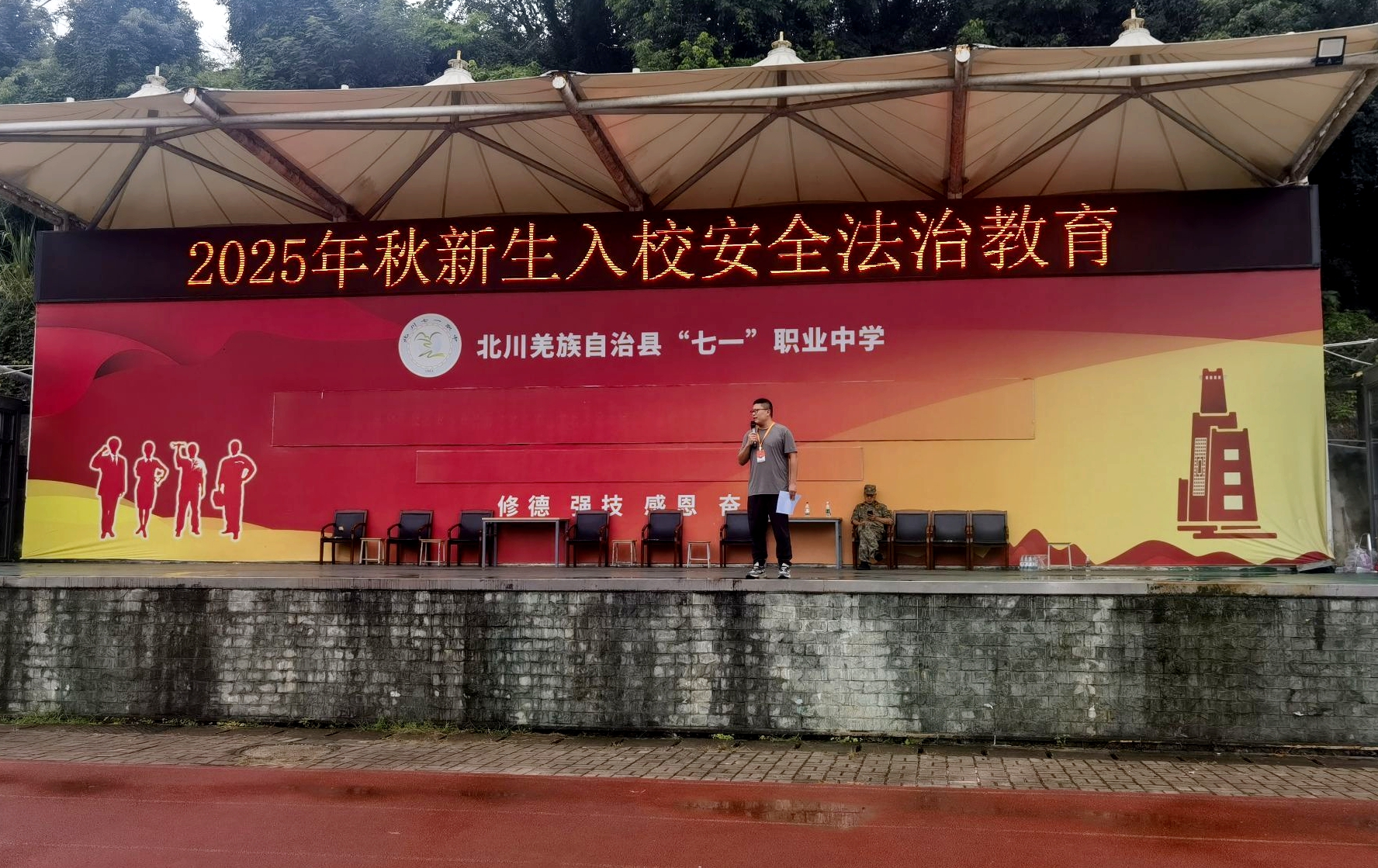 8月25日下午,北川羌族自治縣 “七一” 職業(yè)中學(xué)2025級(jí)全體新生與新生班主任齊聚田徑運(yùn)動(dòng)場(chǎng),開展了2025年秋新生入學(xué)安全法治專題教育活動(dòng)。