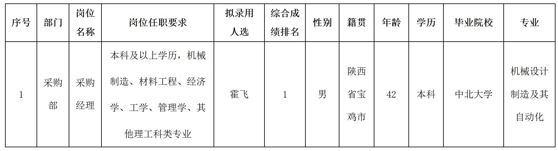 根據(jù)四川波鴻實業(yè)有限公司發(fā)布的招聘公告及招聘相關規(guī)定,經(jīng)面試、體檢等程序,擬錄用霍飛同志到四川威斯卡特工業(yè)有限公司綿陽分公司工作,現(xiàn)予以公示,具體情況如下: