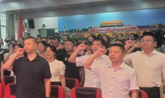 集體宣誓將會(huì)議推向高潮。該校安全處主任、2023級(jí)政教負(fù)責(zé)人吳蘭帶領(lǐng)全體教師舉行莊嚴(yán)宣誓,與學(xué)生共赴征程,決勝中考,永不言停!鏗鏘誓言彰顯了富樂教師的責(zé)任與擔(dān)當(dāng)。