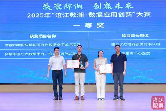 經(jīng)過一整天角逐,最終評(píng)選出一等獎(jiǎng)2名、二等獎(jiǎng)7名、三等獎(jiǎng)10名。其中,四川長虹電器股份有限公司的“智能制造供應(yīng)鏈協(xié)同可信數(shù)據(jù)空間試點(diǎn)項(xiàng)目”、綿陽市中心醫(yī)院的“多模態(tài)醫(yī)療大數(shù)據(jù)平臺(tái),推動(dòng)科研范式革命”分別獲得綜合賽道和醫(yī)療健康賽道第一名。