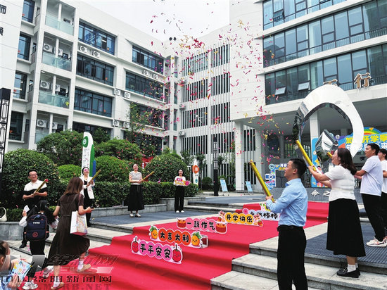 經(jīng)開區(qū)三江實驗學校的老師們用禮炮迎接入學的孩子和家長們