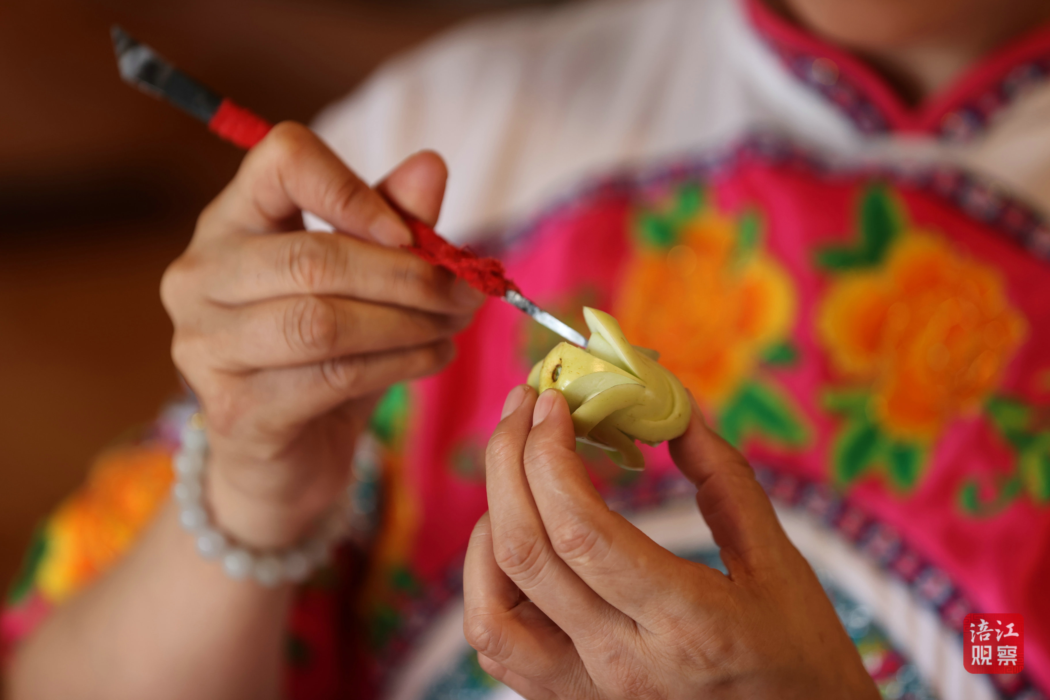 陳力菊還為套棗注入了新時(shí)代精神內(nèi)核:六片花瓣環(huán)環(huán)相扣守護(hù)棗核,象征“56個(gè)民族永結(jié)同心”——傳統(tǒng)技藝被賦予民族團(tuán)結(jié)的深刻寓意。