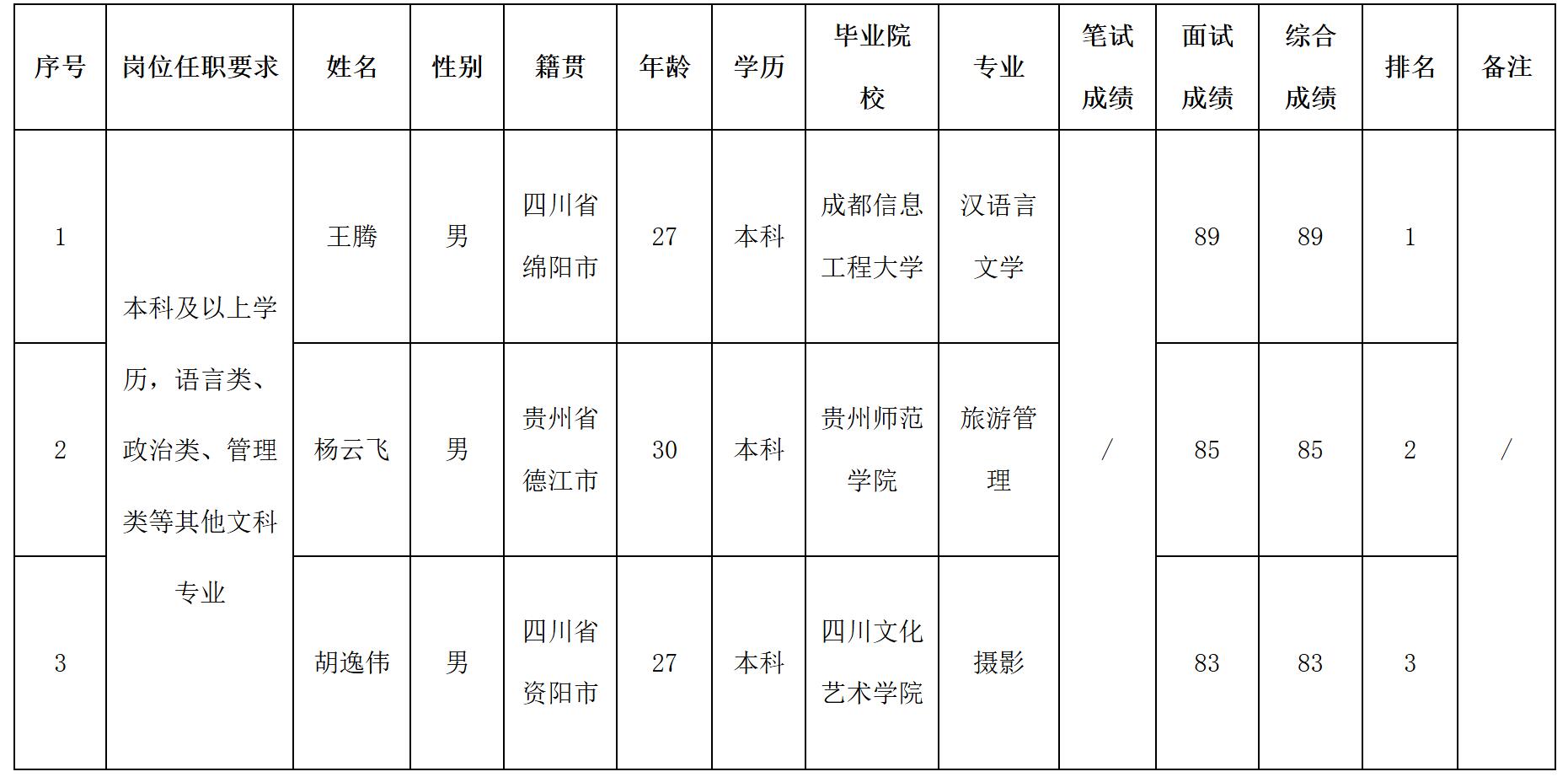 根據(jù)四川波鴻實業(yè)有限公司發(fā)布的招聘公告及招聘相關(guān)規(guī)定,經(jīng)面試等程序,現(xiàn)將面試成績予以公示。