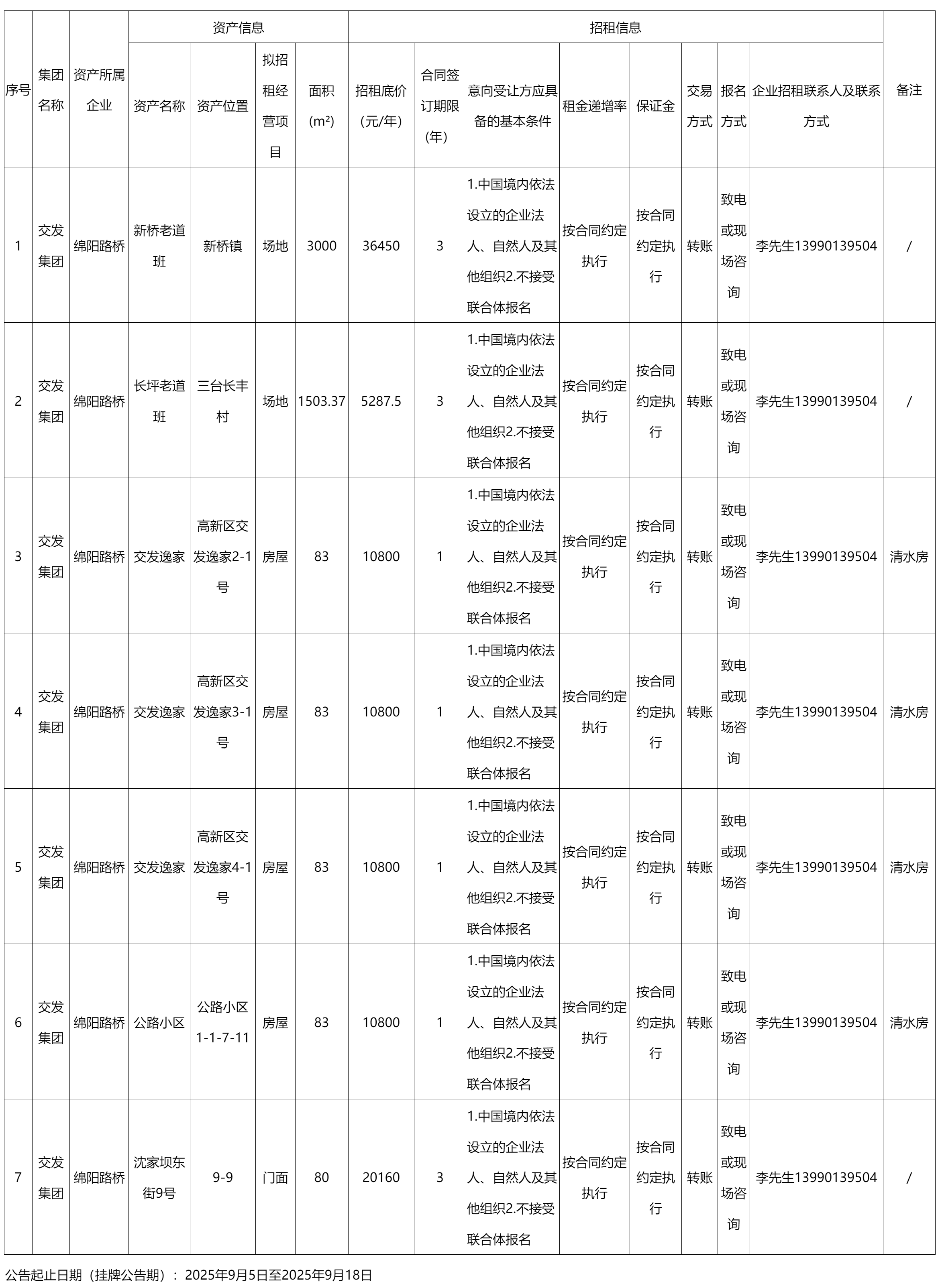 綿陽路橋建設(shè)集團有限責任公司資產(chǎn)招租信息公告