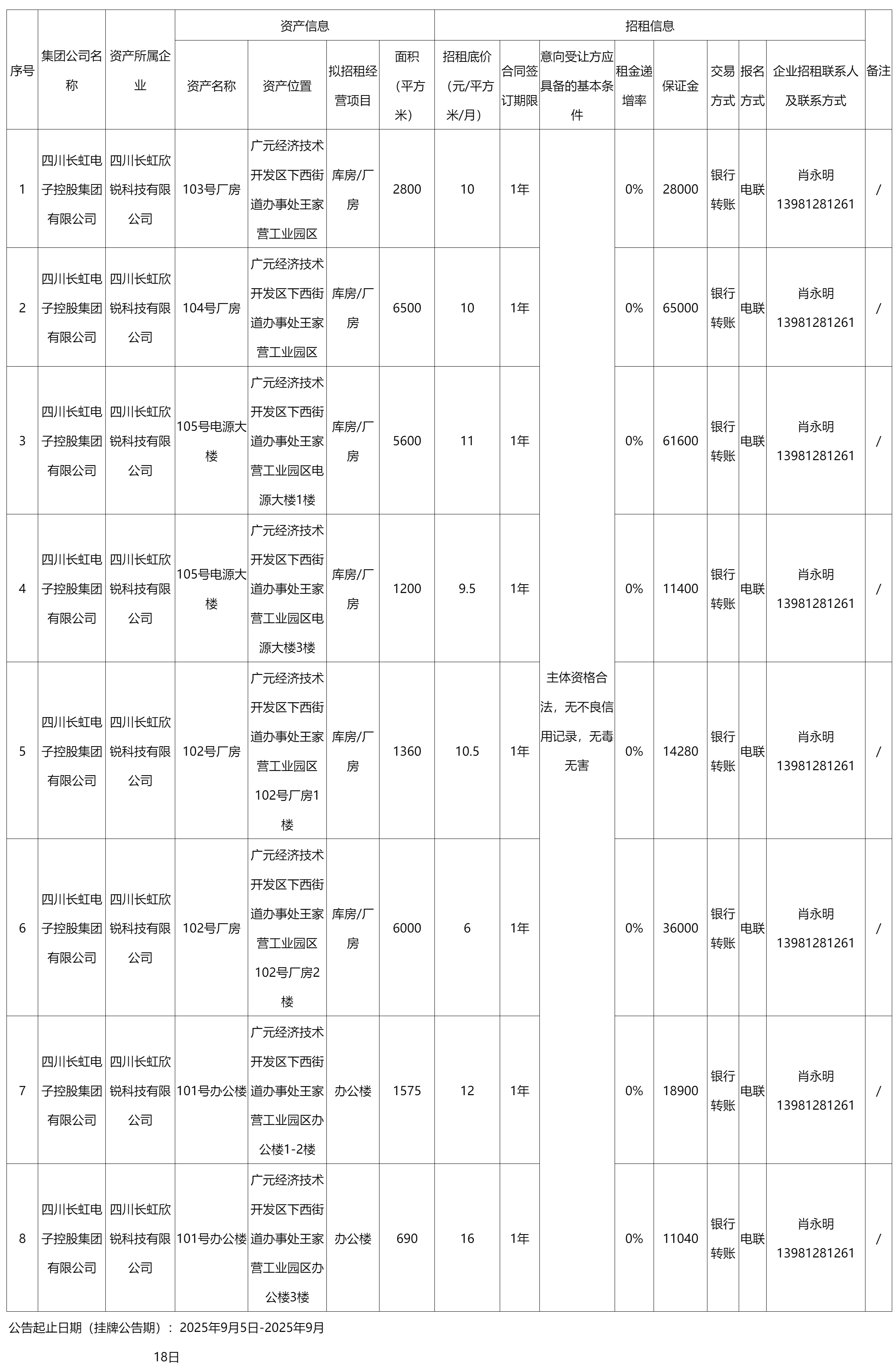 四川長虹欣銳科技有限公司資產(chǎn)出租公告