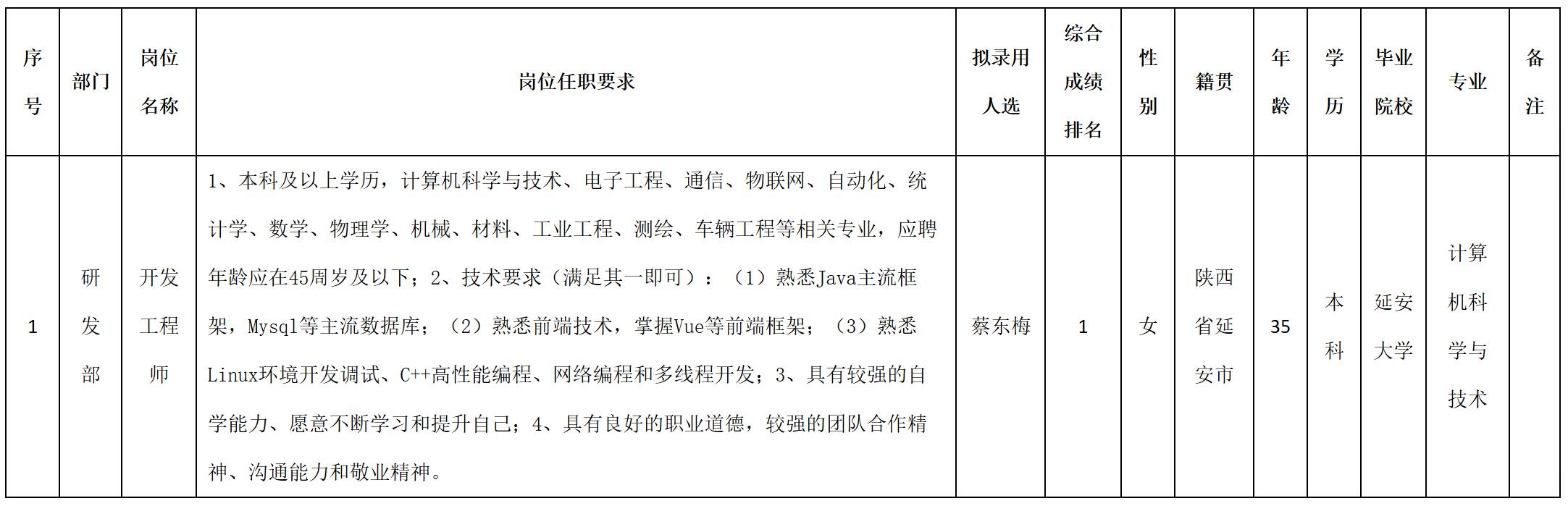 根據(jù)四川九洲投資控股集團有限公司軟件與數(shù)據(jù)智能軍團發(fā)布的招聘公告及招聘相關(guān)規(guī)定,經(jīng)筆試、面試、考察、體檢等程序,擬錄用蔡東梅同志到四川九洲投資控股集團有限公司軟件與數(shù)據(jù)智能軍團工作,現(xiàn)予以公示,具體情況如下: