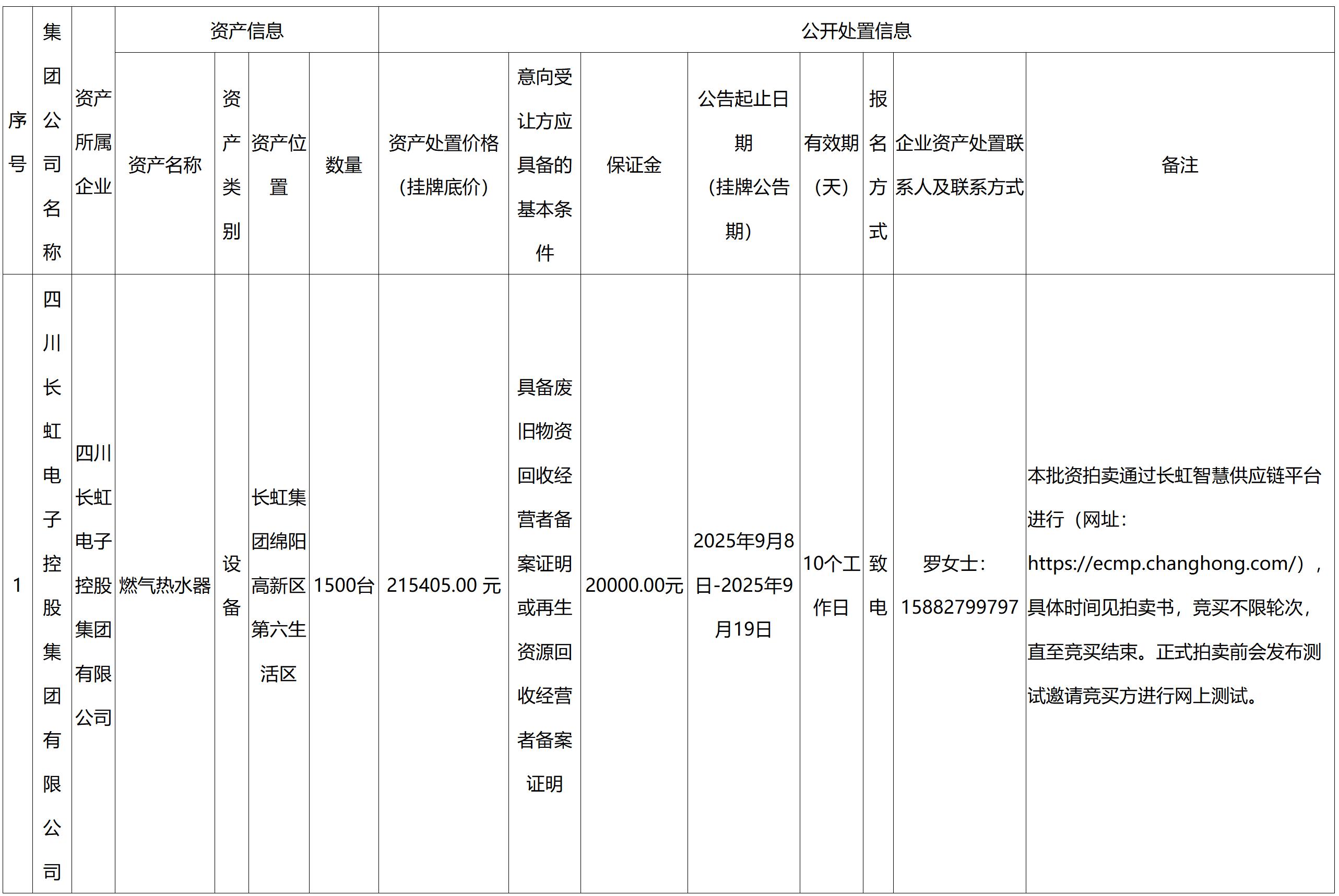 四川長虹電子控股集團有限公司資產(chǎn)處置公告