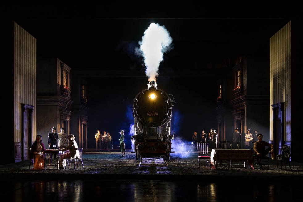 不同于老版的寫實內(nèi)景,這一版演出舞臺設(shè)計以外景為主,一列老式蒸汽火車隨劇情推進在臺上行進、旋轉(zhuǎn)。何冰說,火車這一意象,一方面以視覺壓迫感象征戰(zhàn)爭在人們心中投下的深深恐懼,一方面也蘊含“它也可以帶我們?nèi)ミh方”的溫暖希望。(記者白瀛)