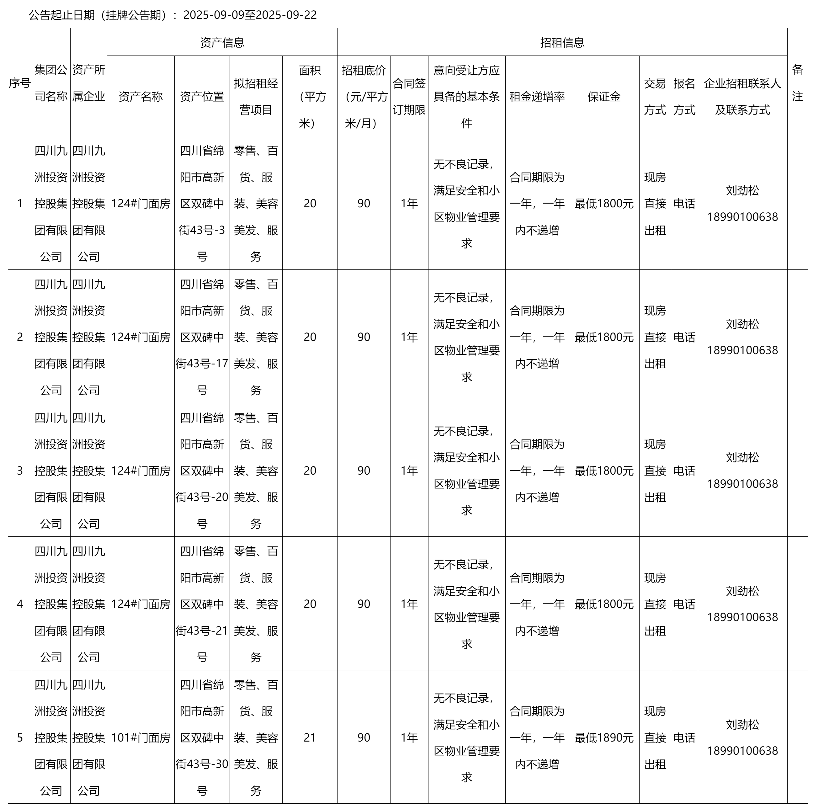 四川九洲線纜有限責(zé)任公司資產(chǎn)出租公告