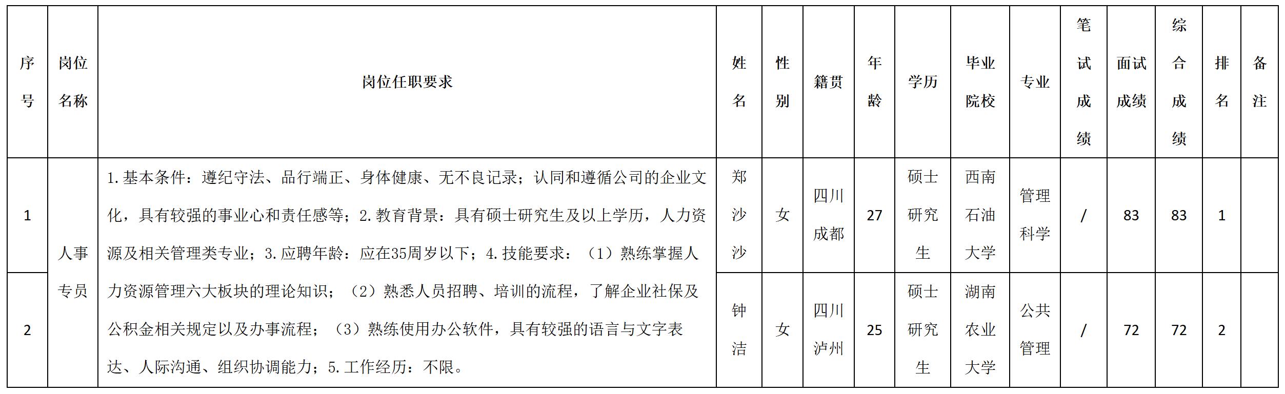 根據(jù)四川湖山電器股份有限公司發(fā)布的招聘公告及招聘相關(guān)規(guī)定,經(jīng)筆試、面試等程序,現(xiàn)將筆試(面試)成績予以公示。
