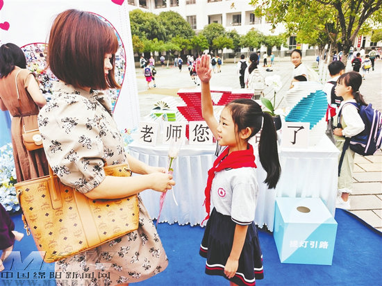 9月10日一早,安州區(qū)七一實驗小學門口擺滿鮮花,一枝枝象征愛與尊敬的鮮花和書籍禮品送到每位進校老師手中。校園內還專門設置“時光記憶”照片墻,回顧老師們走上教師崗位的點點滴滴。