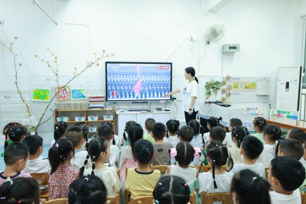 教室里看到整齊的徒步方隊邁著矯健的步伐走過天安門廣場時,孩子們不禁發(fā)出陣陣驚嘆;當各種先進的裝備方隊展示在屏幕上時,孩子們的眼睛里閃耀著好奇和興奮的光芒;當空中梯隊在天空劃出一道絢麗的弧線時,孩子們興奮地歡呼起來。