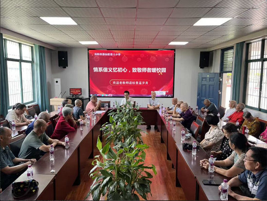 活動(dòng)當(dāng)日,老教師們或相互攙扶、或由家屬陪同,分批踏入熟悉的校園。久別重逢的他們親切交談,憶共事時(shí)光、話校園變遷,溫馨氛圍滿溢。隨后,全體人員齊聚會(huì)議室,開(kāi)啟座談交流。