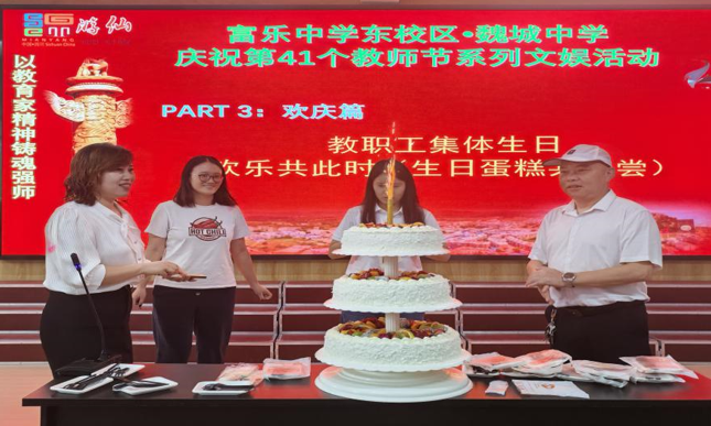 在教職工集體生日環(huán)節(jié),該校工會(huì)為大家準(zhǔn)備了鮮花和精美禮物,老師們齊唱生日歌,共享生日蛋糕,將慶?;顒?dòng)推向了高潮。