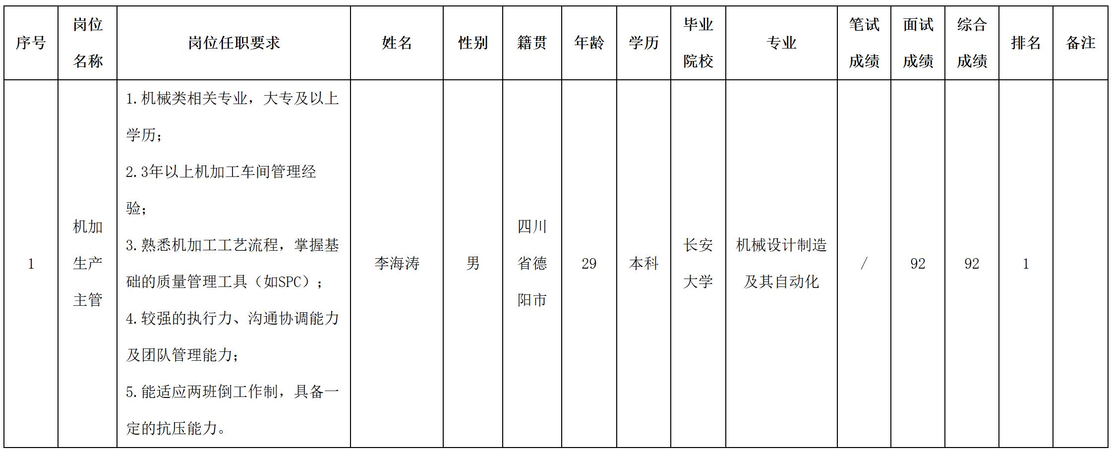根據四川波鴻實業(yè)有限公司發(fā)布的招聘公告及招聘相關規(guī)定,經面試等程序,現將面試成績予以公示。