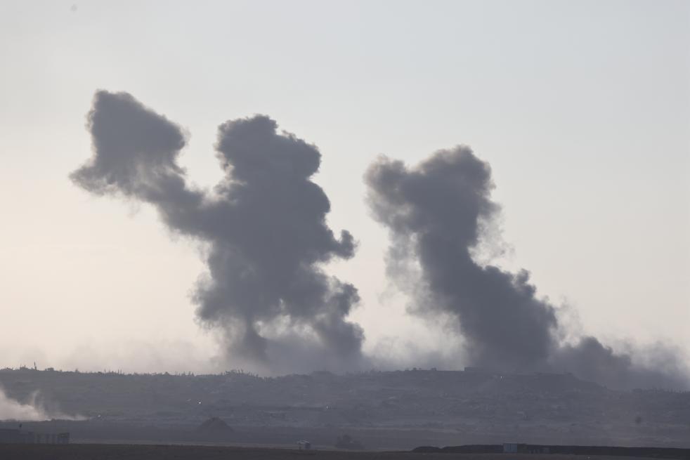 這是9月16日從加沙邊境以色列一側(cè)拍攝的加沙地帶遭襲后升起濃煙。新華社發(fā)(賈馬爾·阿瓦德攝)