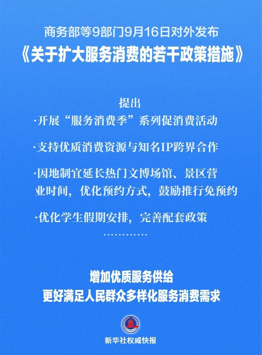 商務(wù)部等9部門9月16日對(duì)外發(fā)布《關(guān)于擴(kuò)大服務(wù)消費(fèi)的若干政策措施》,提出五方面19條舉措,包括: