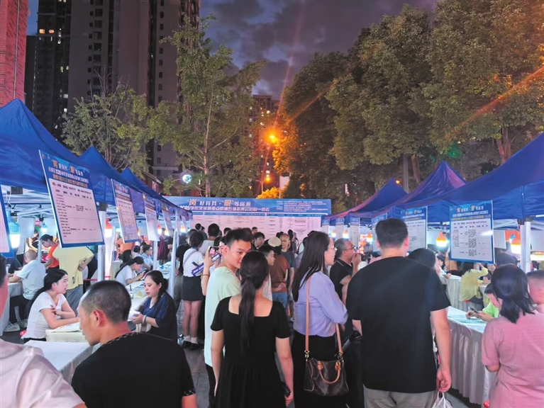 活動(dòng)現(xiàn)場(chǎng),政策咨詢(xún)區(qū)、企業(yè)展位前熙熙攘攘,求職者手執(zhí)簡(jiǎn)歷、細(xì)詢(xún)崗位,企業(yè)招聘人員耐心解答、廣納良才,政策的暖流、就業(yè)的希望,在夜色中交織涌動(dòng)。