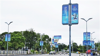除火炬廣場(chǎng)、南郊機(jī)場(chǎng)外,富樂山酒店、科發(fā)鉑驪酒店等重要接待酒店也設(shè)置了統(tǒng)一歡迎畫面與科技感裝置,場(chǎng)館周邊路口也擺放了道路導(dǎo)視牌。50根燈桿上的節(jié)能LED動(dòng)態(tài)道旗以醒目方式,指引著這場(chǎng)“從‘科技領(lǐng)航’到‘未來(lái)奔赴’的沉浸式體驗(yàn)”的到來(lái)。