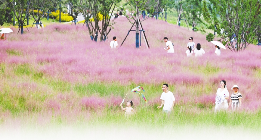 當(dāng)前,科技城新區(qū)八家堰的粉黛亂子草進(jìn)入盛花期,如云似霧的粉色花穗在秋風(fēng)中輕搖,引得市民前來打卡。