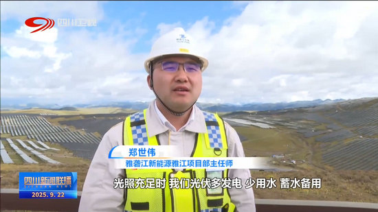 雅礱江新能源雅江項目部主任師 鄭世偉: 光照充足時,我們光伏多發(fā)電、少用水,蓄水備用,陰雨天氣光伏出力不足的時候,水電會迅速補充,通過水光智能協(xié)同,穩(wěn)定輸出優(yōu)質(zhì)綠電,每年可以減少二氧化碳排放約160萬噸,相當于植樹約9000萬棵,或抵消一個中型城市全年碳排放量。