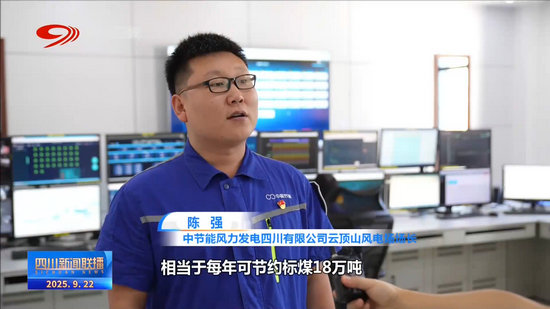 中節(jié)能風力發(fā)電四川有限公司云頂山風電場場長 陳強:相當于每年可節(jié)約標煤18萬噸,每年可減少二氧化碳排放量約46萬噸、二氧化硫排放量約4200噸。