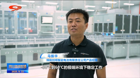 綿陽創(chuàng)明智能電池有限責任公司產(chǎn)品經(jīng)理 馬振華:我們的大圓柱電池可以在-30℃到60℃的極端環(huán)境下穩(wěn)定工作,應用在輕型動力、家庭儲能、特種裝備、具身機器人等多種領(lǐng)域,助力經(jīng)濟社會低碳綠色轉(zhuǎn)型。