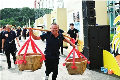 在梓潼田間地頭,一場妙趣橫生的農(nóng)耕趣事比賽熱烈開場。比賽中,最引人注目的當(dāng)屬豐收大作戰(zhàn)接力賽了。在“粒粒皆辛苦”環(huán)節(jié),選手們需要用長筷子夾起豆子,放入指定的容器中??此坪唵蔚膭幼?,卻需要高度的專注和耐心。接下來的“袋鼠運糧忙”環(huán)節(jié),選手們套上麻袋,變身活力“袋鼠”,在賽道上蹦蹦跳跳地前進(jìn),展現(xiàn)出頑強(qiáng)的拼搏精神。最后的“扁擔(dān)接力賽”中,選手們挑起裝滿糧食的扁擔(dān),健步如飛地沖向終點,整個過程好玩又有趣。