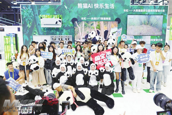 由虹魔方公司打造的熊貓互動平臺,更是展區(qū)內(nèi)的“網(wǎng)紅打卡點(diǎn)”。大屏實(shí)時(shí)直播大熊貓國家公園的野生熊貓動態(tài),觀眾可切換視角觀察;“熊貓小衛(wèi)士”體驗(yàn)區(qū)通過趣味答題傳播保護(hù)知識,參與者可獲取電子證書;“云打卡”活動則讓觀眾生成專屬科博會紀(jì)念海報(bào)。這些設(shè)計(jì)不僅增強(qiáng)了觀展互動性,也體現(xiàn)出長虹在科技賦能文旅融合方面的積極探索。