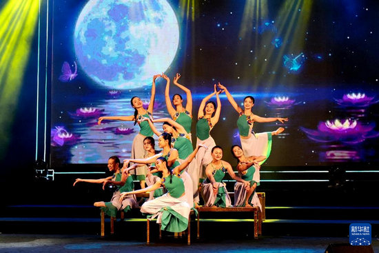 9月25日,在越南河內(nèi)越南國家歌舞劇院,越南演員在2025年中越中秋文藝晚會上表演舞蹈。
