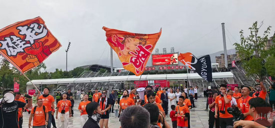 廣元澳源體育中心外,聚集的球迷熱情似火。陳平 攝