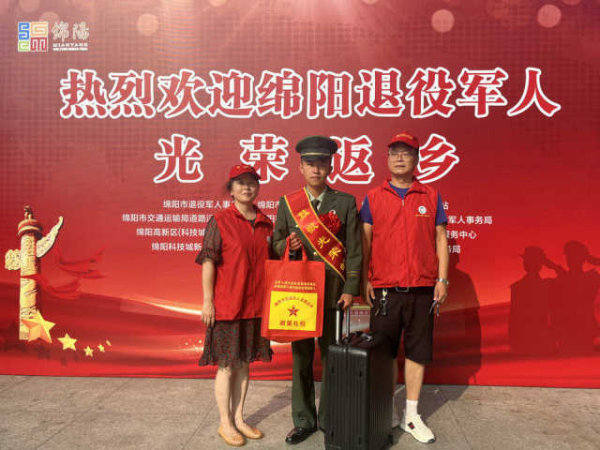 9月11日,在綿陽火車站站前廣場,幾位“老兵”走出出站口,立刻就有退役軍人服務(wù)中心的工作人員迎上去,為其佩戴綬帶,獻(xiàn)上紅花,并發(fā)放“兩卡一手冊”等政策禮包,熱情告知返鄉(xiāng)報到流程及相關(guān)政策。 [