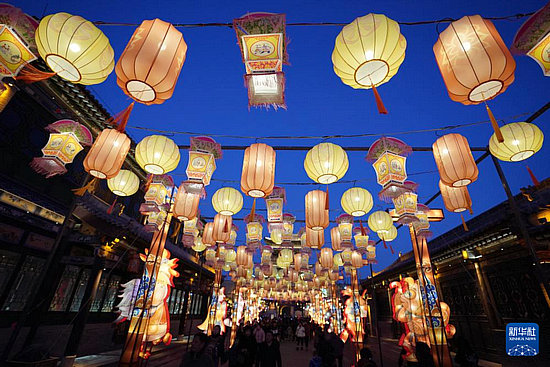 春節(jié)期間,在山西省太原市晉源區(qū)太原古縣城舉辦的“錦繡太原中國(guó)年·鳳舞龍城花燈會(huì)”上,各類花燈流光溢彩、璀璨奪目,吸引眾多游人前來觀賞。[