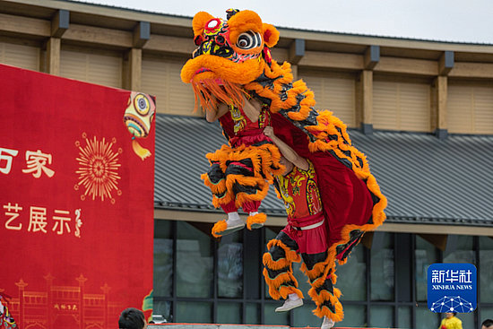 1月22日,在重慶市云陽縣舉辦的2024年民俗展演暨非遺傳承技藝展示活動現(xiàn)場,演員在進行舞獅表演。 春節(jié)臨近,各地張燈結彩,迎新春活動豐富多彩,到處洋溢著濃濃的年味。[
