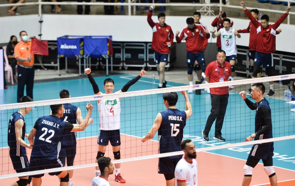 9日在泰國佛統(tǒng)舉行的2022年男排亞洲杯賽中,中國男排在先失一局的情況下以3:1逆轉(zhuǎn)擊敗巴林隊(duì),順利晉級復(fù)賽。[