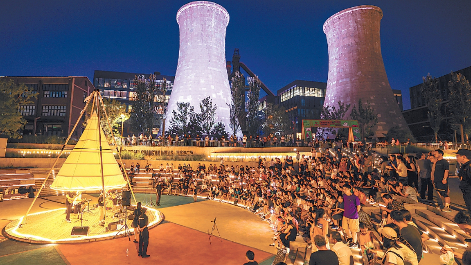 夜幕降臨,首鋼園成為攝影、車友等愛好者們相聚的“網(wǎng)紅地”,市民們逛街遛彎的“大公園”。[