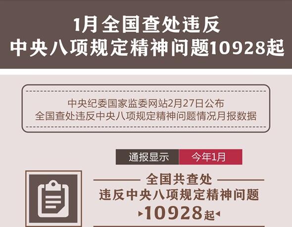 1月全國查處違反中央八項規(guī)定精神問題10928起